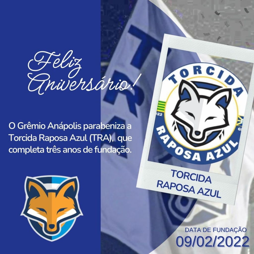 O Grêmio Anápolis parabeniza a Torcida Raposa Azul (TRA), que completa três anos de fundação, neste domingo (9), e agradece pela cobertura do clube através das redes sociais, além do apoio e paixão pela Raposa!