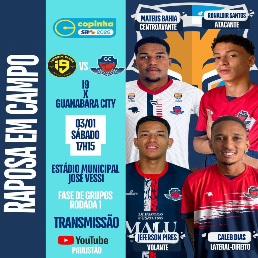 O atacante Ronaldir Santos fez uma grande partida neste sábado (3). O atleta que está emprestado pelo Grêmio Anápolis ao Guanabara City, teve duas contribuições de gol, na vitória da equipe por 3 a 0, contra o I9/SP, no Estádio Municipal José Vessi, em Cravinhos. O confronto foi válido pela primeira rodada da fase de grupos da Copa São Paulo 2026. O segundo gol do clube aos 40 minutos do segundo tempo, teve uma excelente jogada do atleta da Raposa, que conduziu a bola até a área e finalizou, antes do defensor marcar o gol contra. Posteriormente aos 45 minutos, Ronaldir, após passe do goleiro em tiro de meta, chutou rasteiro com categoria na saída do goleiro, para definir o triunfo da Águia. Raposas no clube Além do atacante Ronaldir, também estão emprestados ao Guanabara City, o lateral-direito Caleb Dias, o volante Jeferson Pires e o centroavante Mateus Bahia. Todos fizeram suas estreias na competição. O GEA segue a monitorar os atletas do clube no torneio, que seguem a representar a Raposa no torneio. Parabéns pelo desempenho, Raposas! Assista os gols abaixo. Imagens: YouTube Paulistão