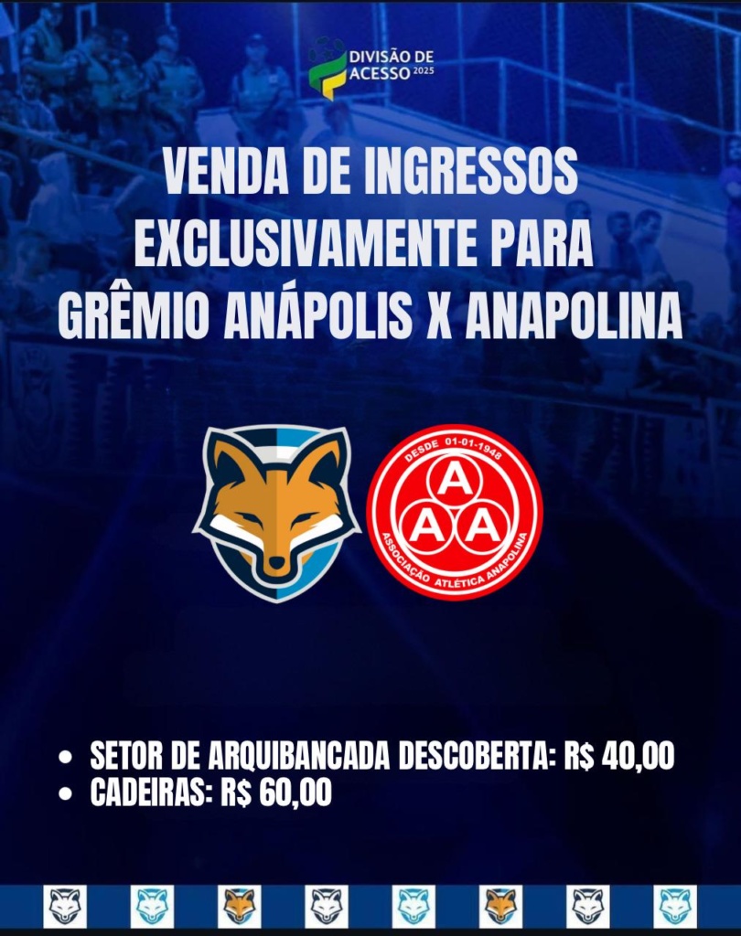 Exclusivamente para o jogo entre Grêmio Anápolis e Anapolina, as entradas terão os seguintes valores: