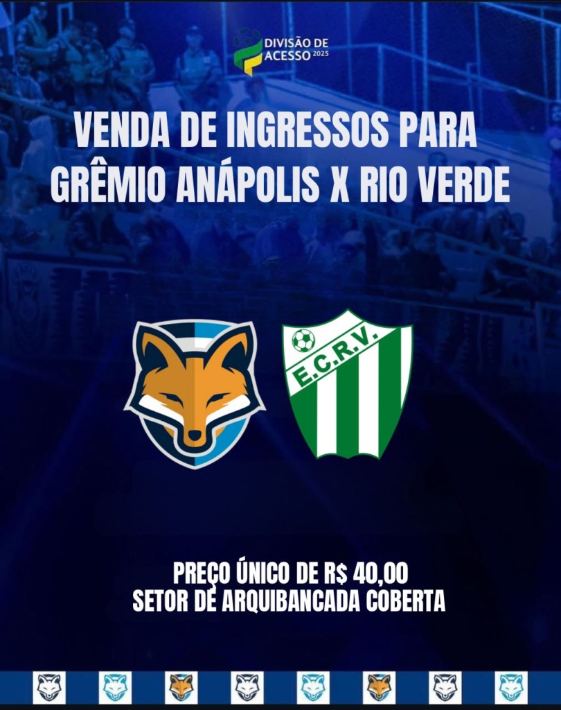 Confira a data, local e horário das trocas de ingressos do Programa Torcida Premiada para o confronto entre Grêmio Anápolis x Rio Verde, que acontece neste sábado (19), às 16h, pela décima segunda rodada da Divisão de Acesso 2025.