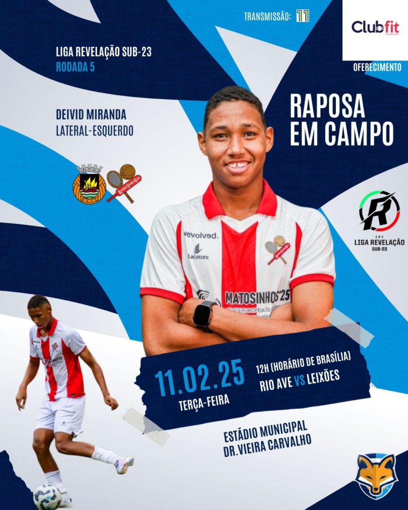 O zagueiro Darlan Silva e o lateral-esquerdo Deivid Miranda, vão a campo nesta terça-feira (11), daqui há pouco, às 12h, pelo Leixões, diante do Rio Ave, no Estádio Municipal Dr. Vieira Carvalho. A partida é válida pela quinta rodada desta fase da Liga Revelação sub-23.