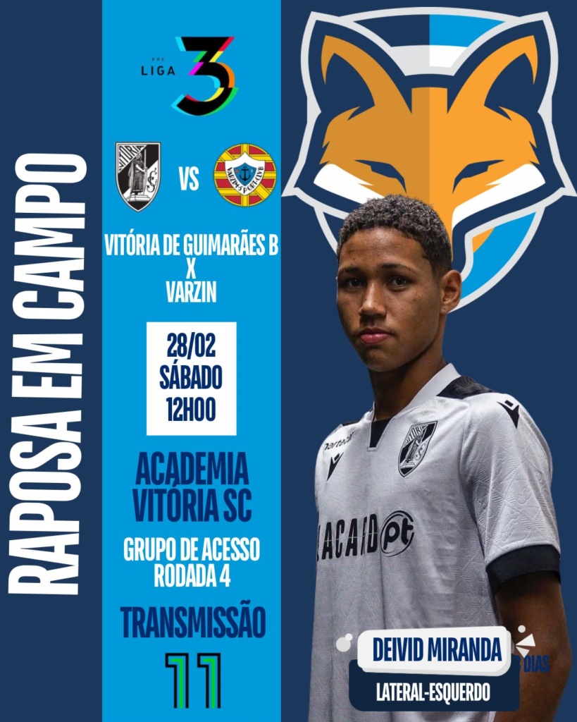 O lateral-esquerdo Deivid Miranda está relacionado pelo Vitória de Guimarães B, que enfrenta neste sábado (28), às 11h, a equipe do Varzim. A partida é válida pela quarta rodada do Grupo de Acesso Liga 3 de Portugal.