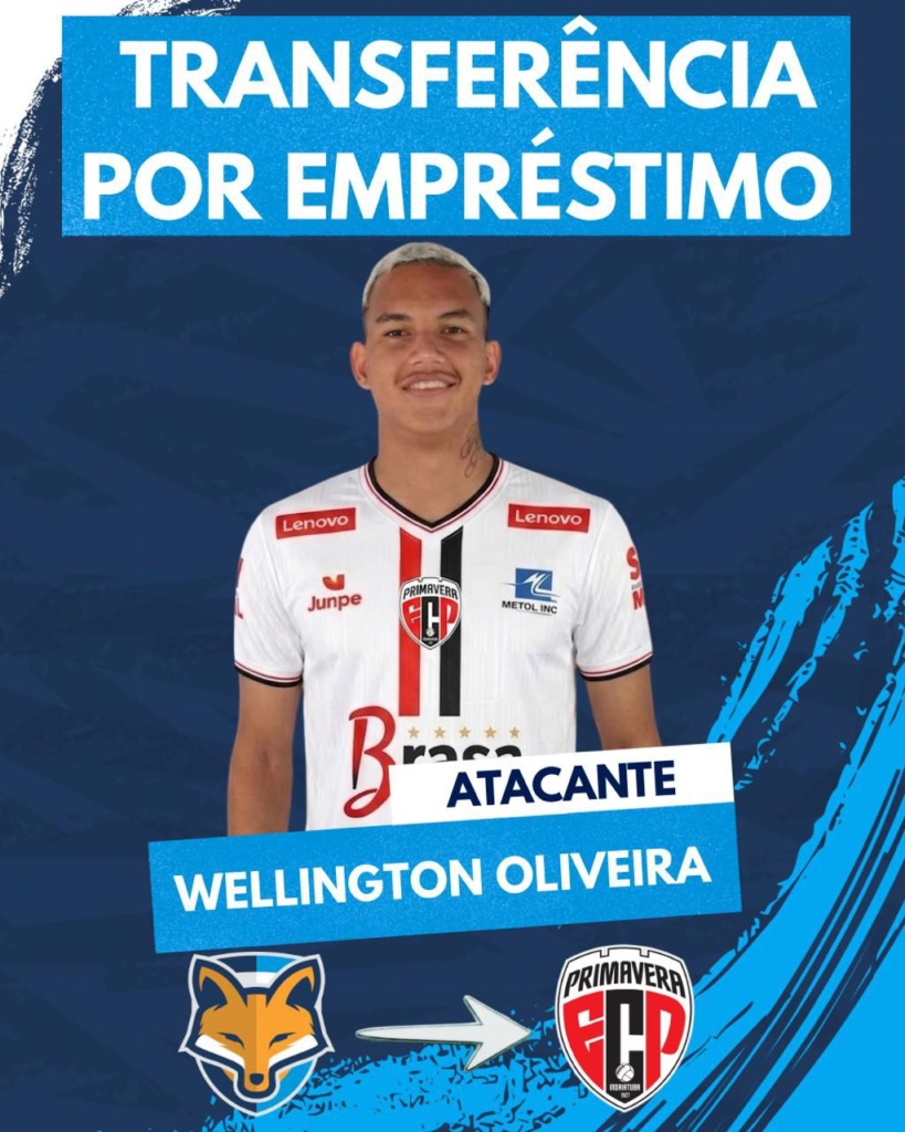 O Grêmio Anápolis anuncia nesta segunda-feira (20), a transferência por empréstimo do atacante Wellington Oliveira (2005) ao Primavera/SP. O atleta chega ao clube para a disputa da Copa Paulista 2026 e Paulistão 2027.