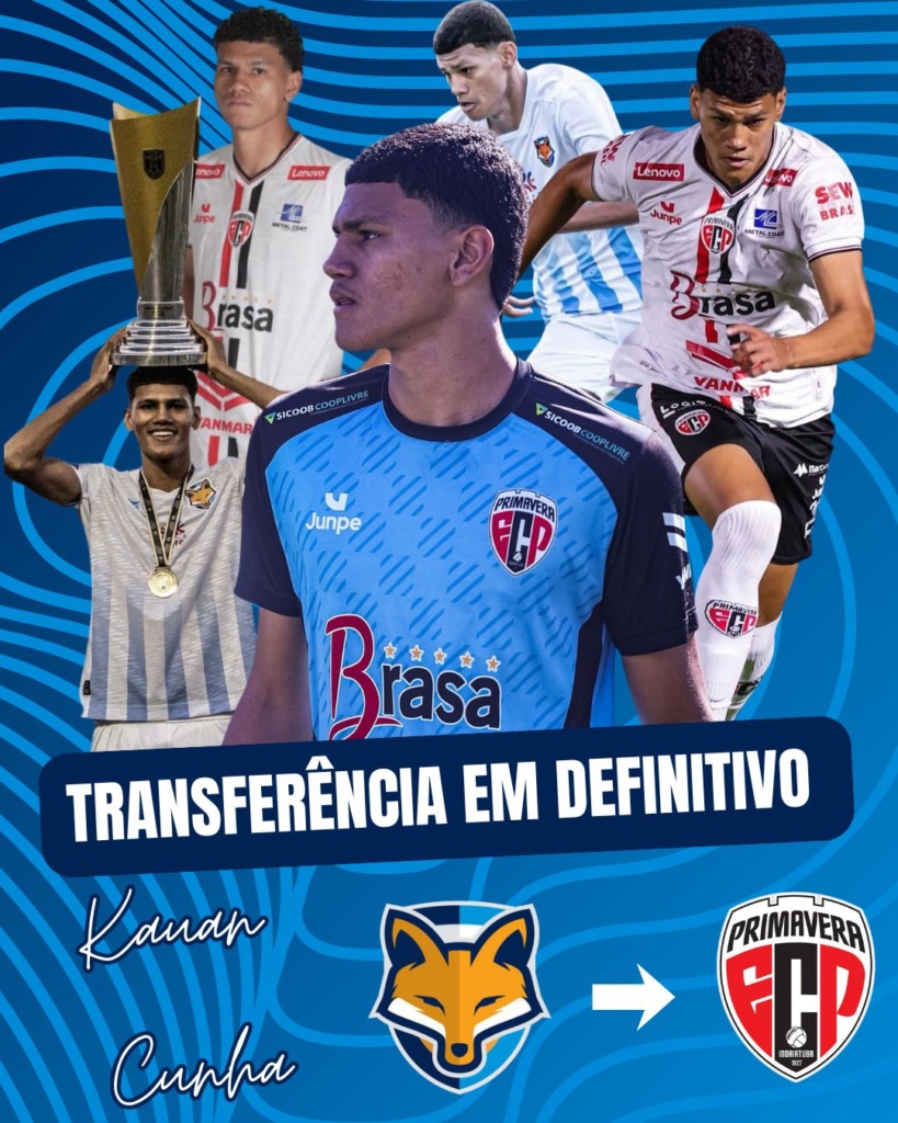 O Grêmio Anápolis anuncia neste sábado (25), a transferência em definitivo do atacante Kauan Cunha (2006), ao Primavera/SP. O clube paulista exerceu a opção de compra de 50% dos direitos econômicos do jogador.