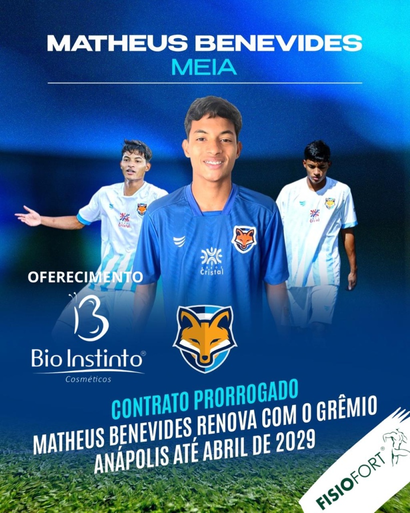 O Grêmio Anápolis comunica nesta quinta-feira (1), a renovação de contrato do meia Matheus Benevides até abril de 2029.