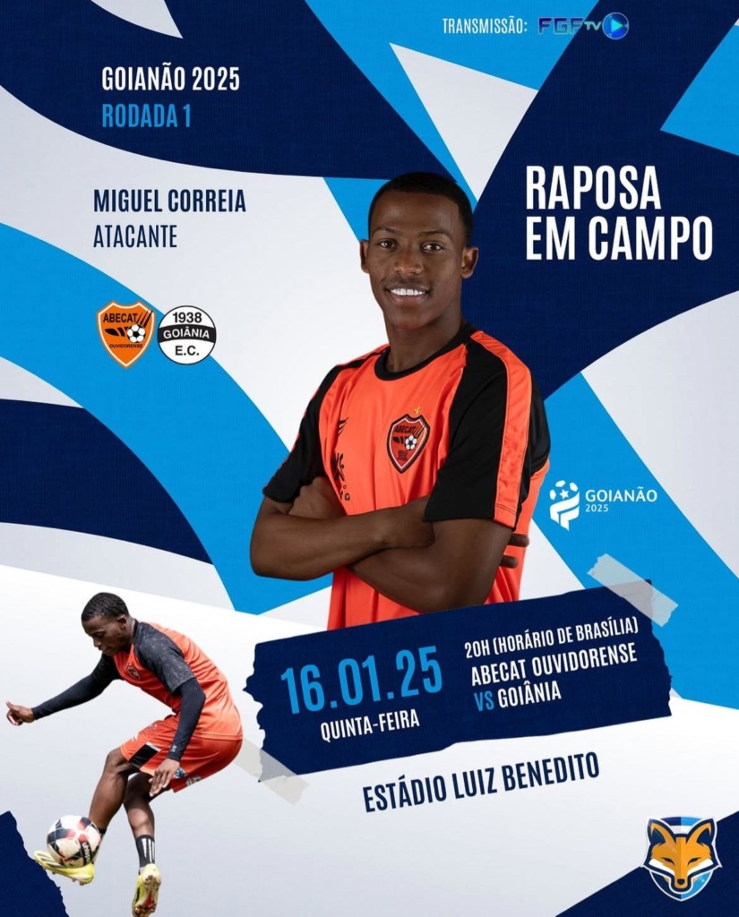 O atacante Miguel Correia e o meia Abraão Silvio, estão relacionados para a estreia do Abecat Ouvidorense, no Goianão 2025, que acontece nesta quinta-feira (16), ás 20h, diante do Goiânia, no Estádio Luiz Benedito, em Ouvidor.