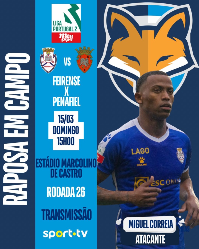 O atacante Miguel Correia foi relacionado pelo Feirense, para atuar contra o Penafiel neste domingo (15), às 15h, no Estádio Marcolino de Castro. A partida é válida pela vigésima sexta rodada da Liga Portugal 2.