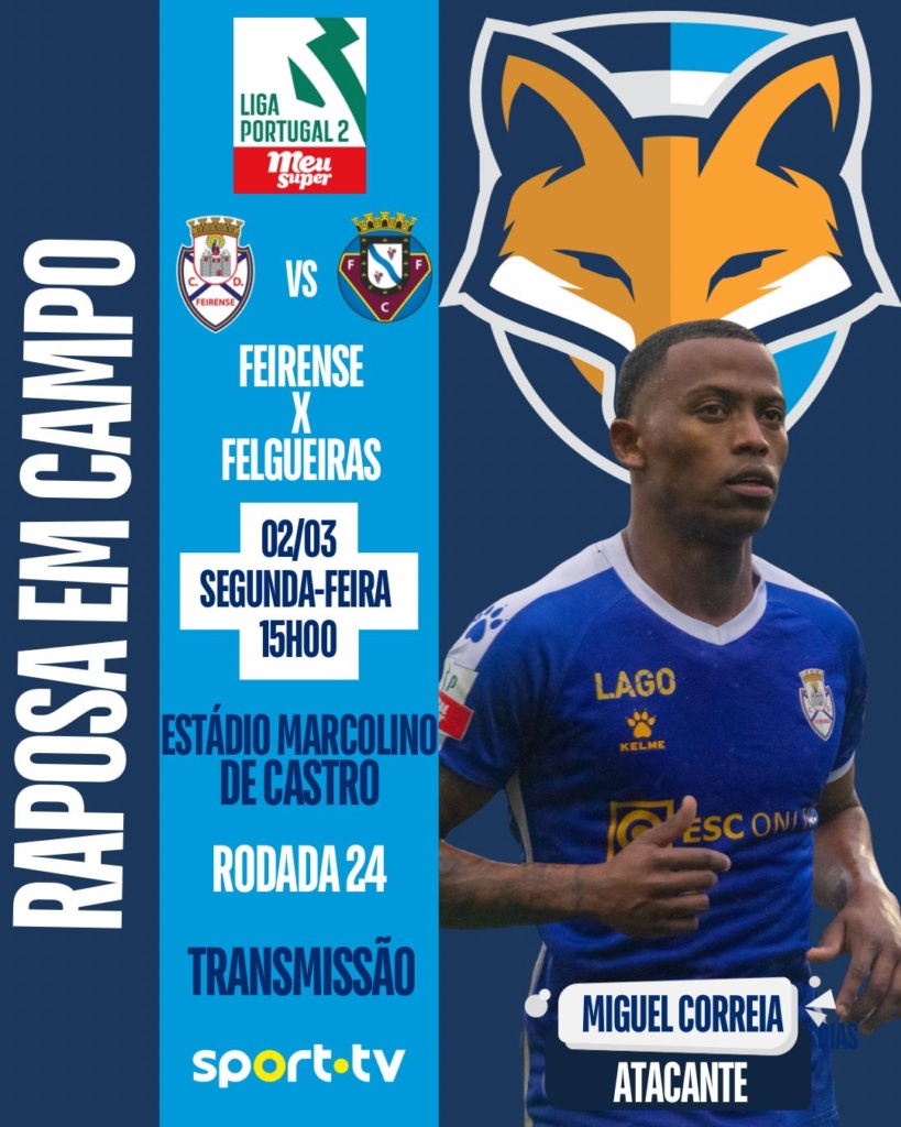 O atacante Miguel Correia foi relacionado pelo Feirense, para atuar contra o Felgueiras nesta segunda-feira (2), às 15h, no Estádio Marcolino de Castro. A partida é válida pela vigésima quarta rodada da Liga Portugal 2.