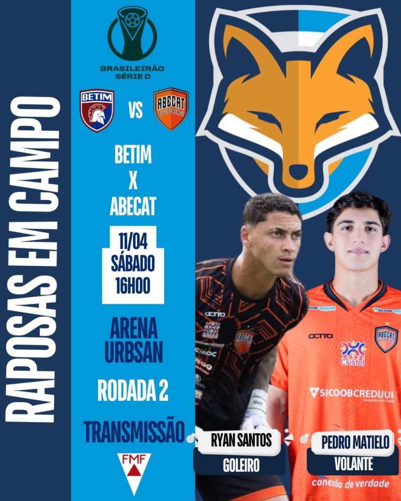O volante Pedro Matielo (2001) e o goleiro Ryan Santos (2006), estão relacionados pelo Abecat/GO para enfrentar o Betim/MG, neste sábado (11), às 16h00, na Arena Urbsan. A partida é válida pela segunda rodada do Brasileirão Série D.