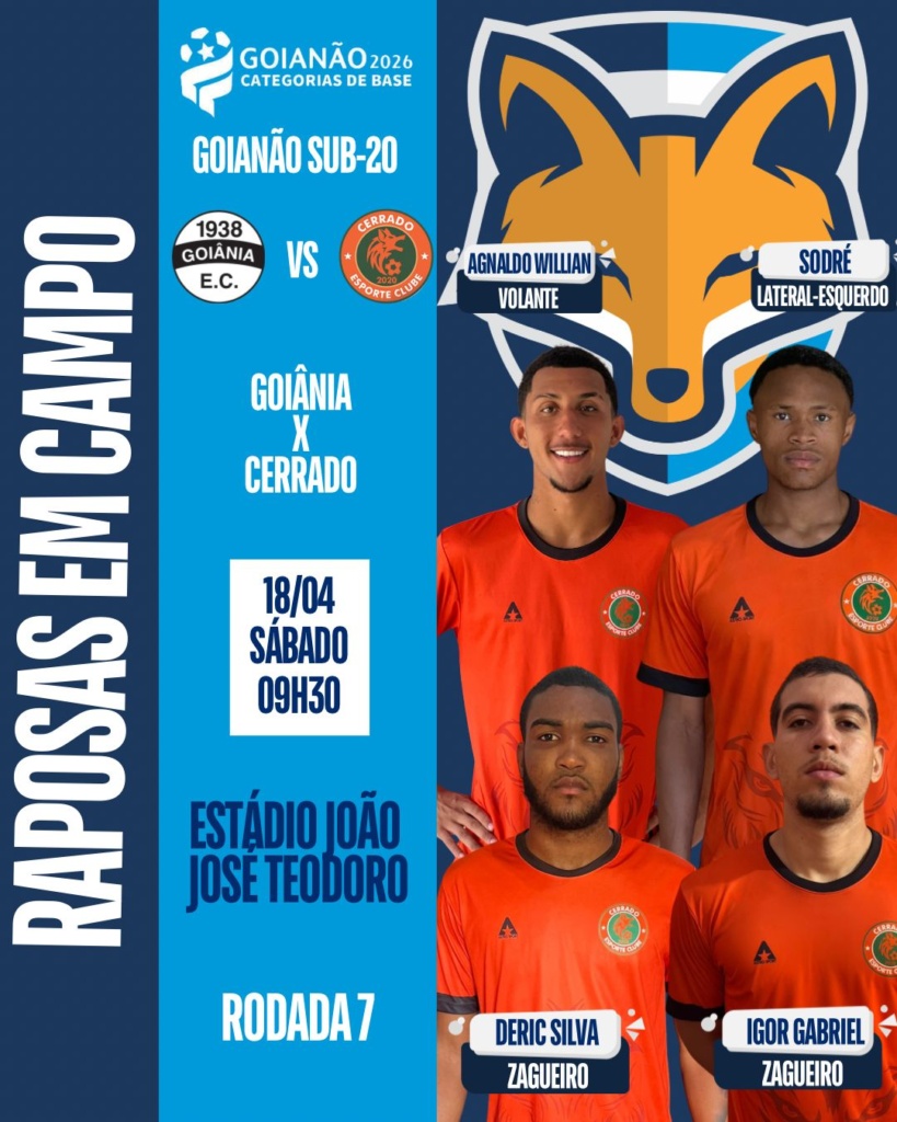 Hoje é dia de quatro atletas da Raposa em campo, pela sétima rodada do Goianão sub-20. Os jogadores atuam pelo Cerrado, diante do Goiânia, neste sábado (18), no Estádio João José Teodoro.