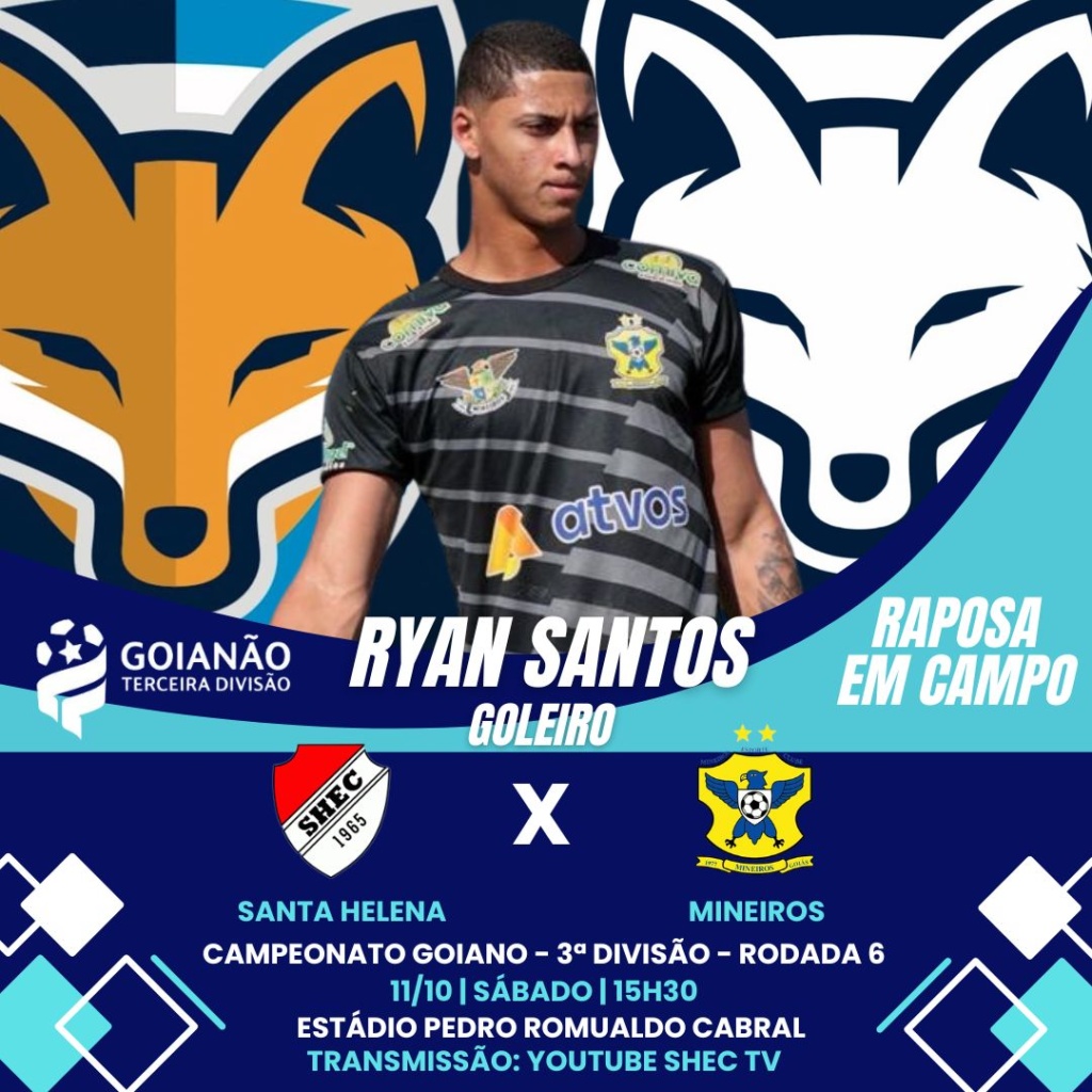 No mesmo horário, também pelo Campeonato Goiano da Terceira Divisão, o goleiro Ryan Santos pode atuar pelo Mineiros, contra o Santa Helena, fora de casa, no Estádio Pedro Romualdo Cabral.
