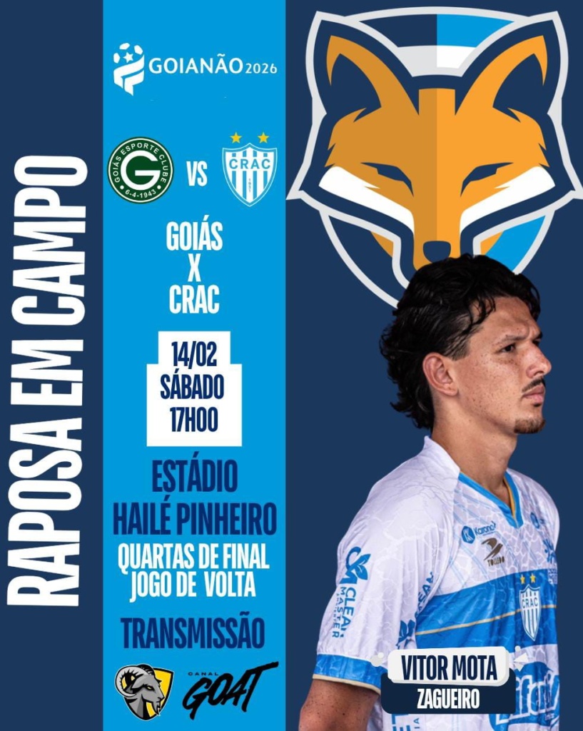 O zagueiro Vitor Mota está relacionado pelo Crac, que enfrenta o Goiás, neste sábado (14), às 17h00, no Estádio Hailé Pinheiro, a Serrinha, em Goiânia. A partida é válida pela volta das quartas de final do Goianão 2026.